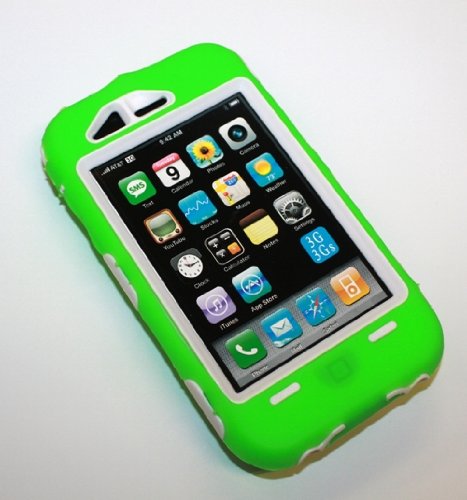 Ipone Super Case 3g, 3gs - Green Silicone Over White Hard Case